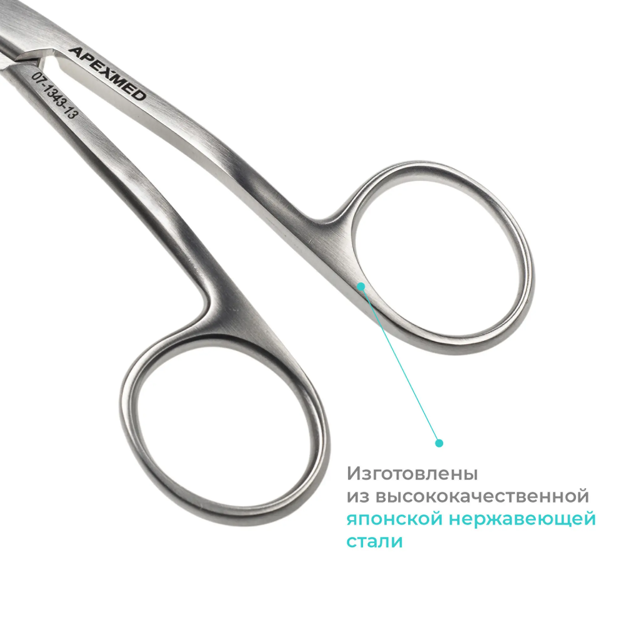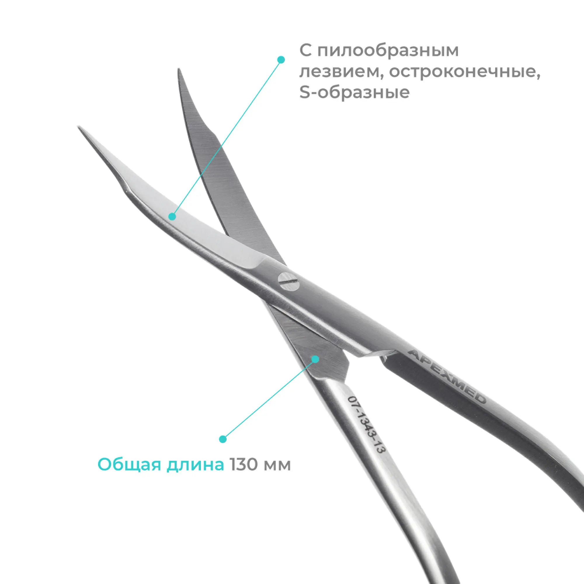 Ножницы хирургические Goldmann-Fox Special (Голдмана-Фокса) с пилообразным лезвием, остроконечные, S-образные, 130 мм, Apexmed