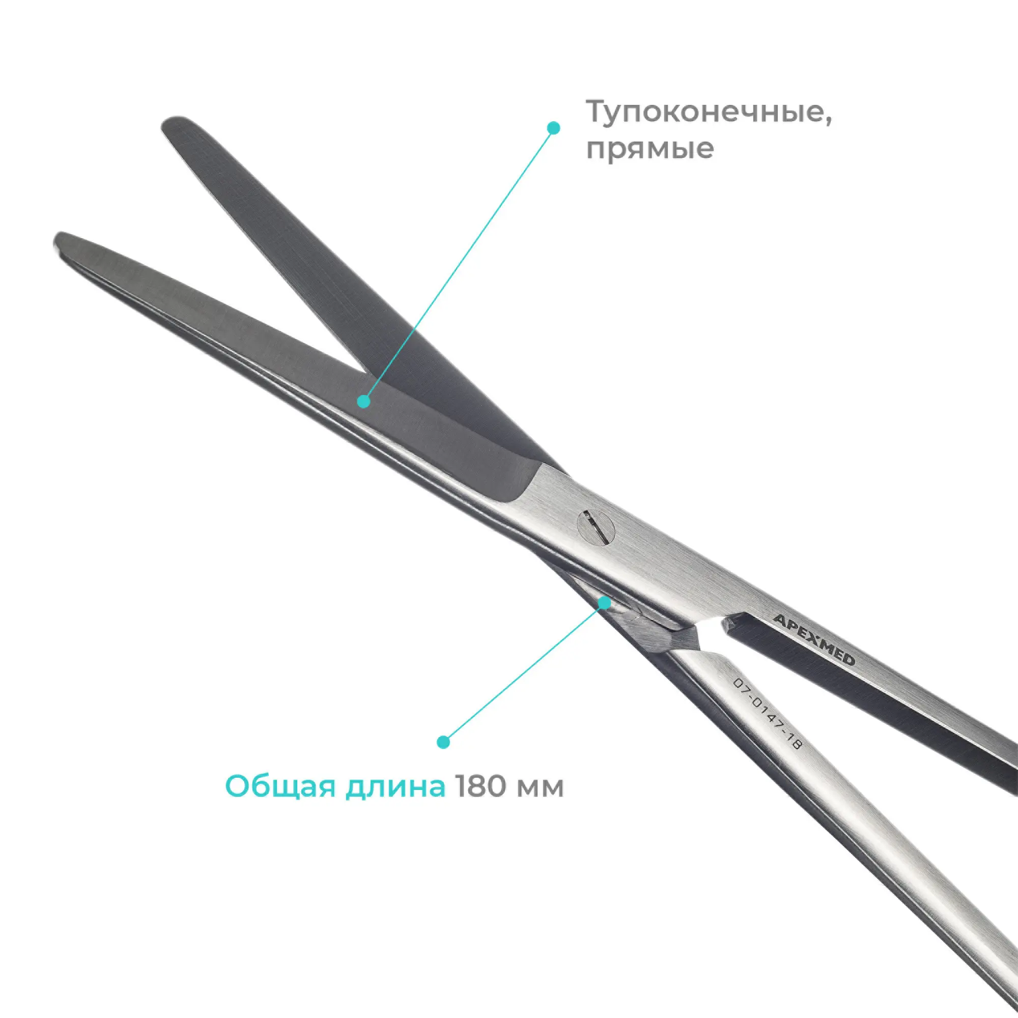 Ножницы хирургические Standard (Стандарт) тупоконечные, прямые, 180 мм, Apexmed