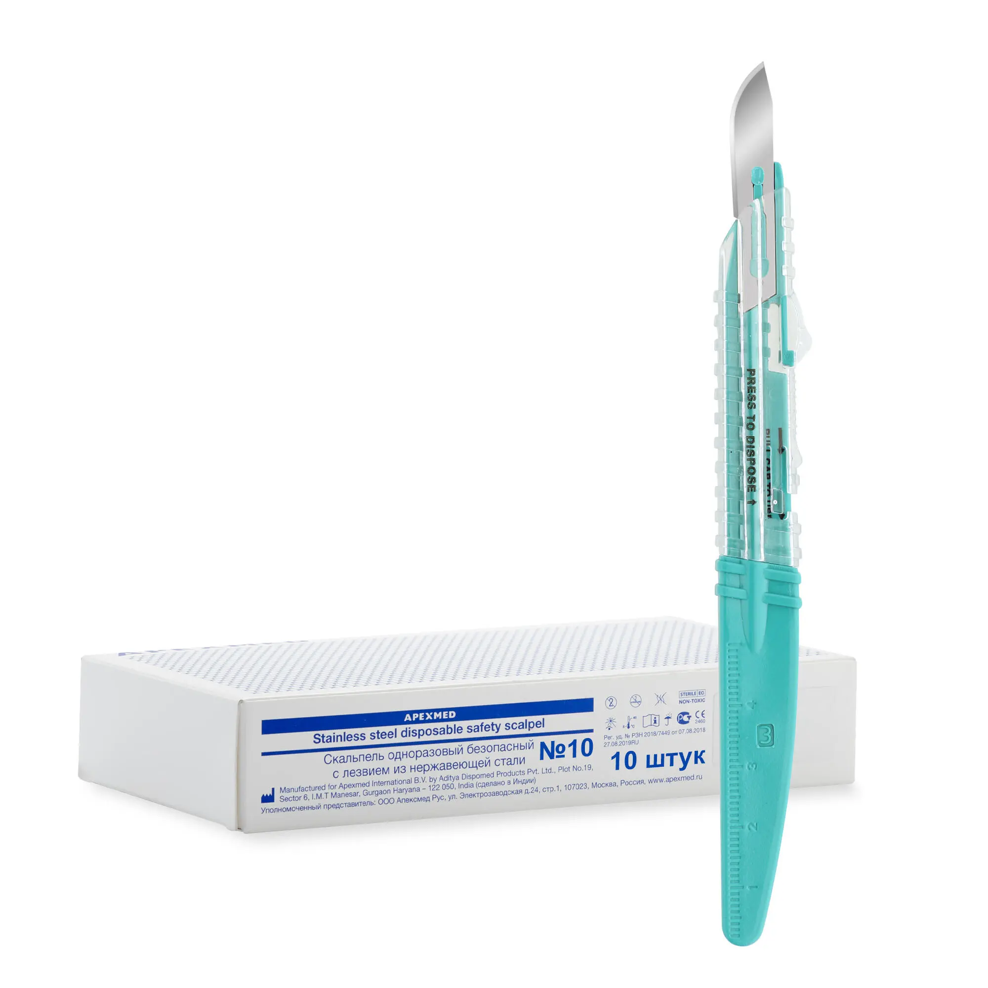 Скальпель безопасный с лезвием из нержавеющей стали №10, 10 штук, Apexmed
