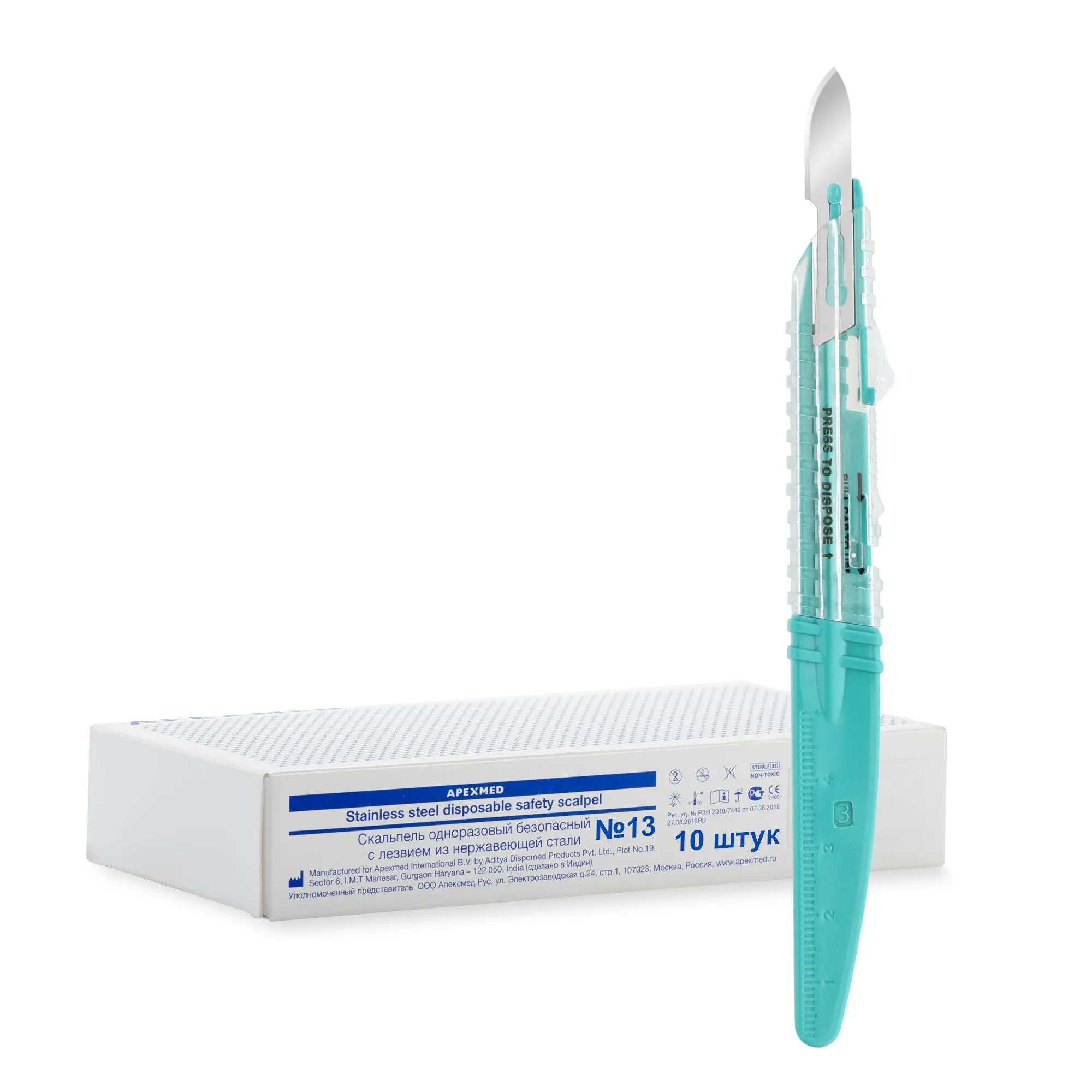 Скальпель безопасный с лезвием из нержавеющей стали №13, 10 штук, Apexmed