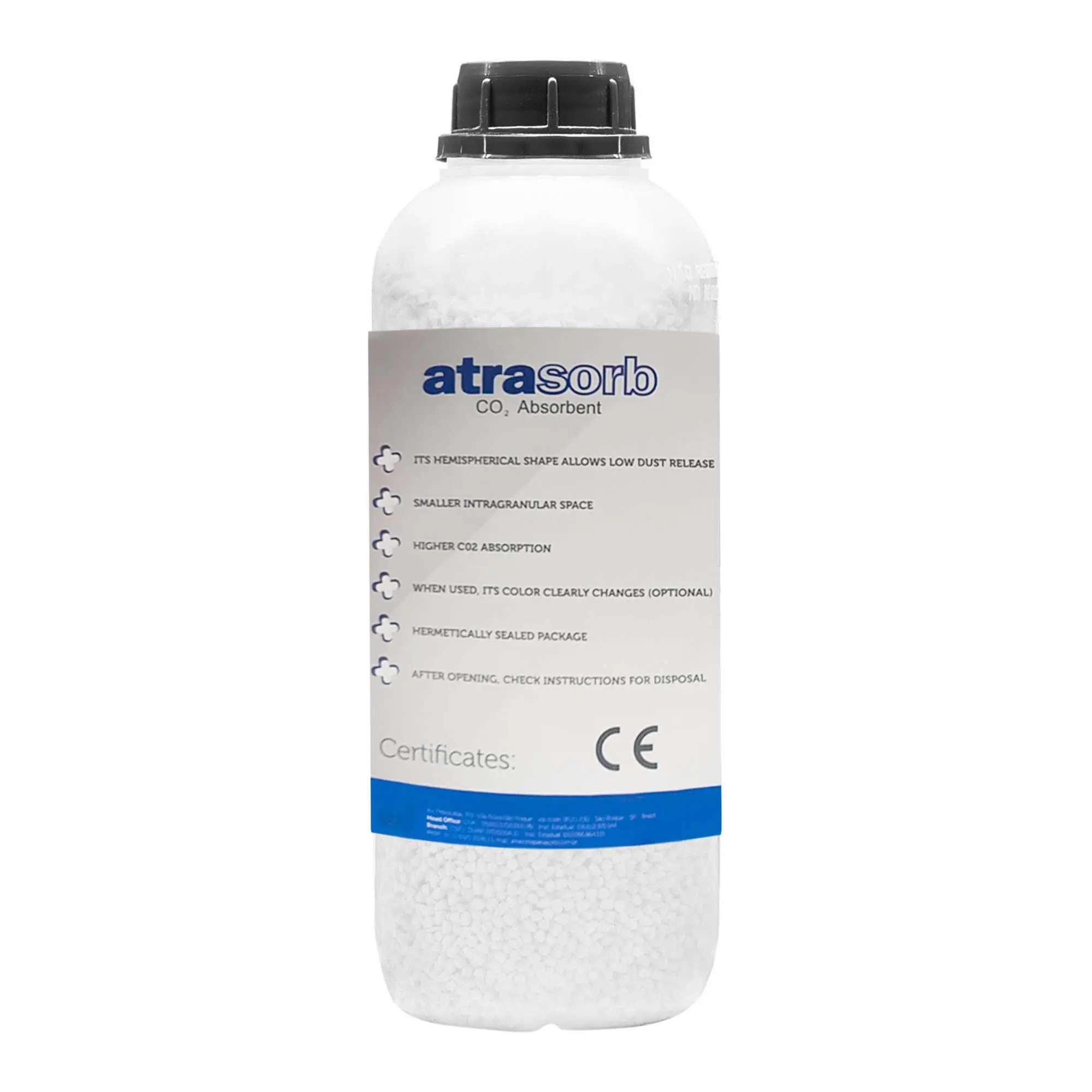 Atrasorb Industrial можно использовать и в других случаях, когда необходимо поглощения CO2, например, в убежищах, индивидуальных или коллективных спасательных системах и в реаниматорах, используемых в рудных шахтах. Также подходит для использования в аквариумах.