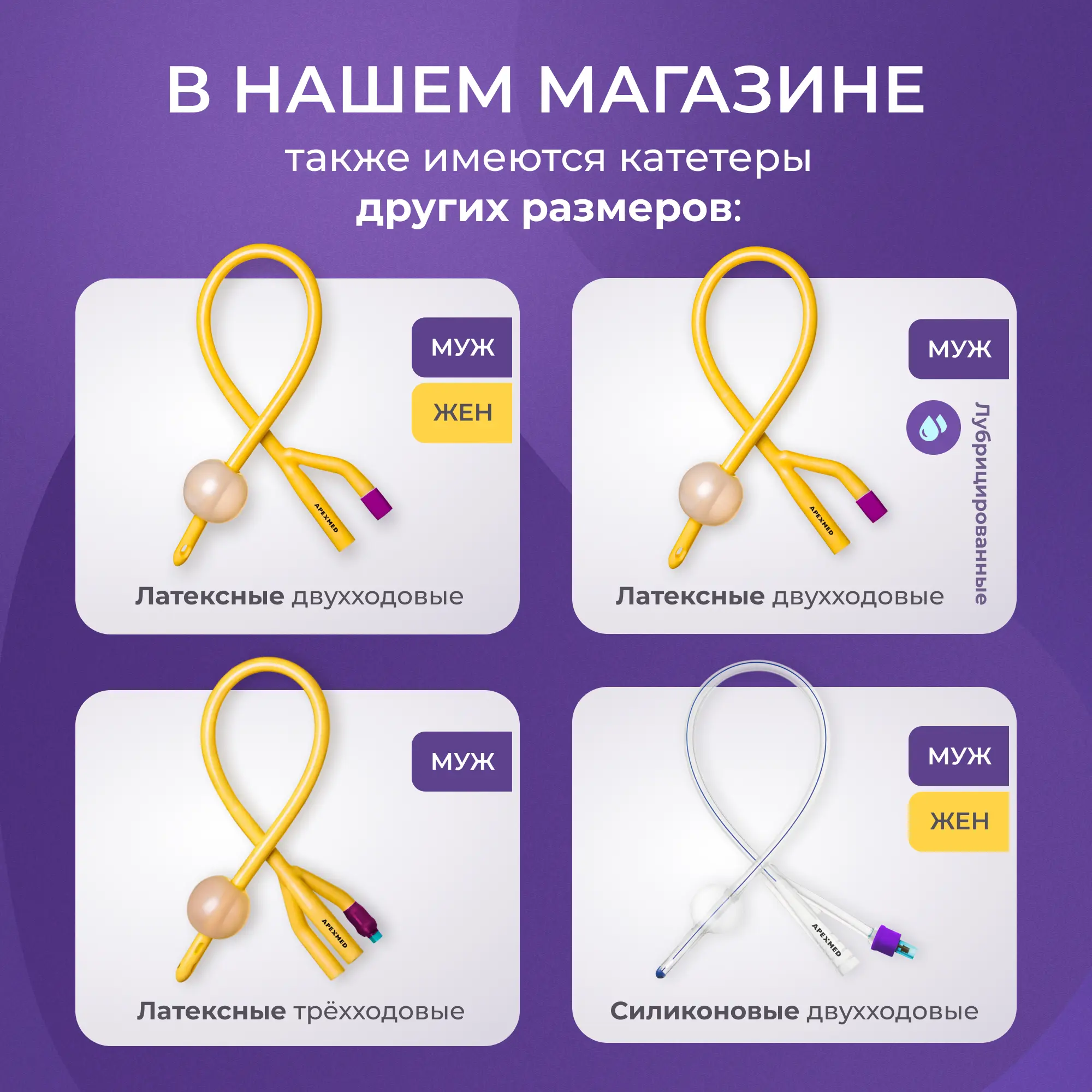Катетер Фолея урологический Apexmed универсальный, мужской Ch/Fr 22, двухходовой, лубрицированный, уретральный