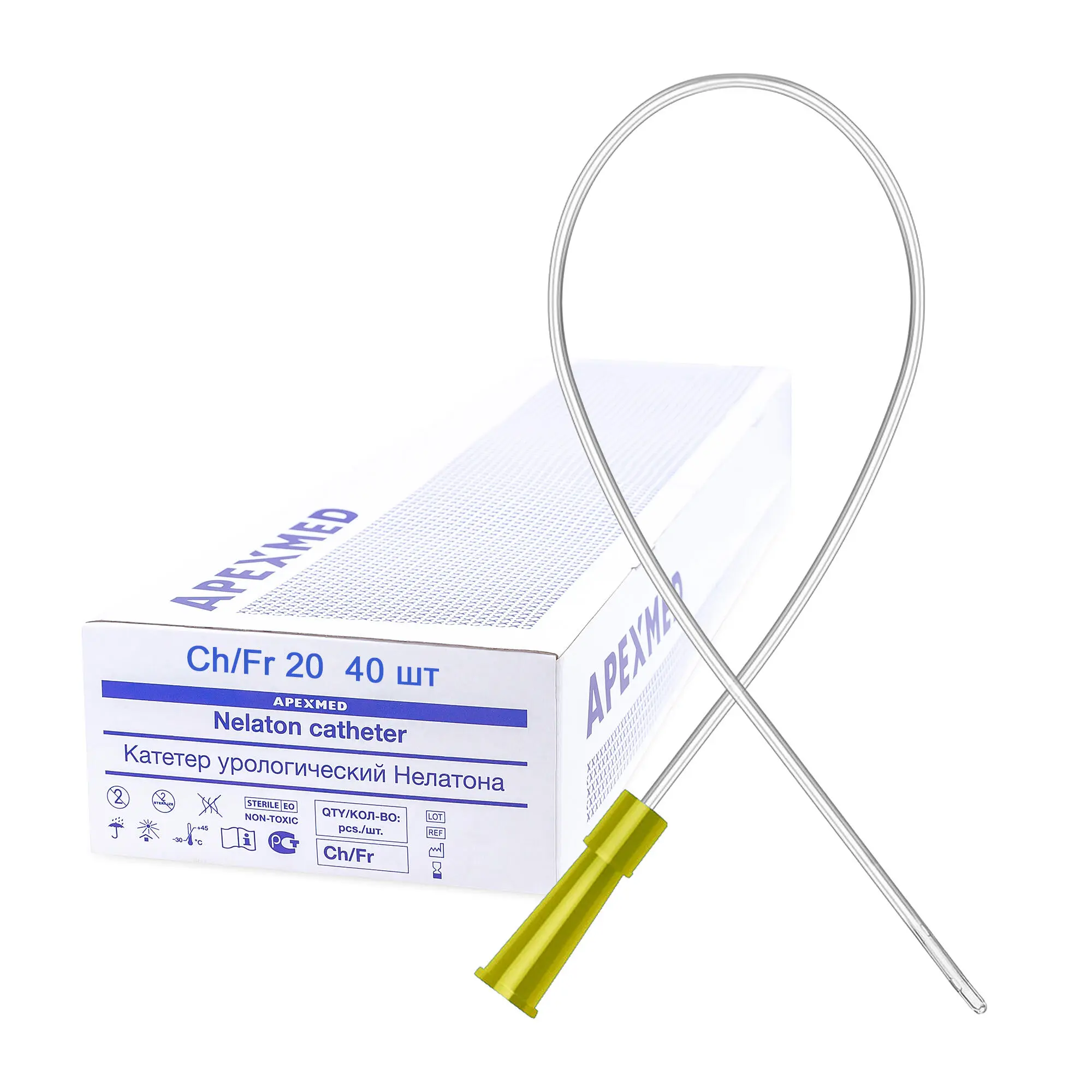 Катетер Нелатона урологический Apexmed мужской, Сh/Fr 20, 40 шт, уретральный