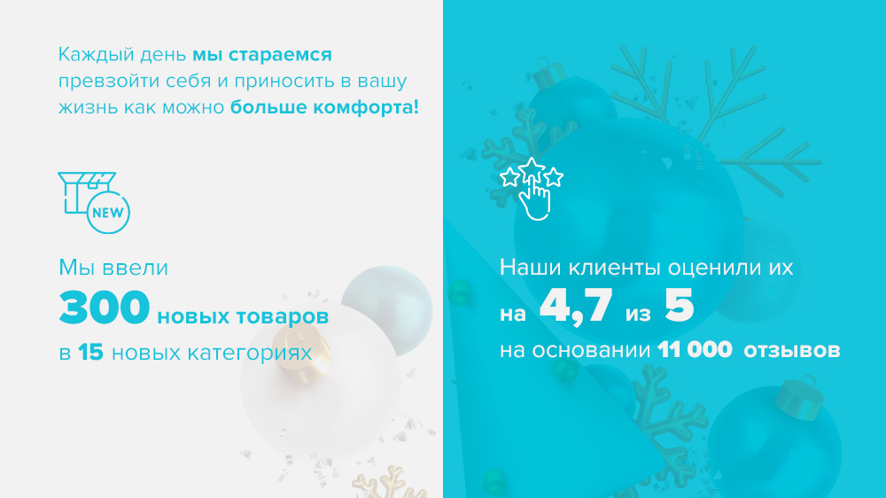 Обратите внимание, с 31 декабря до 8 января у нас выходные. Планируйте покупки заранее и не забудьте о новогодней акции.