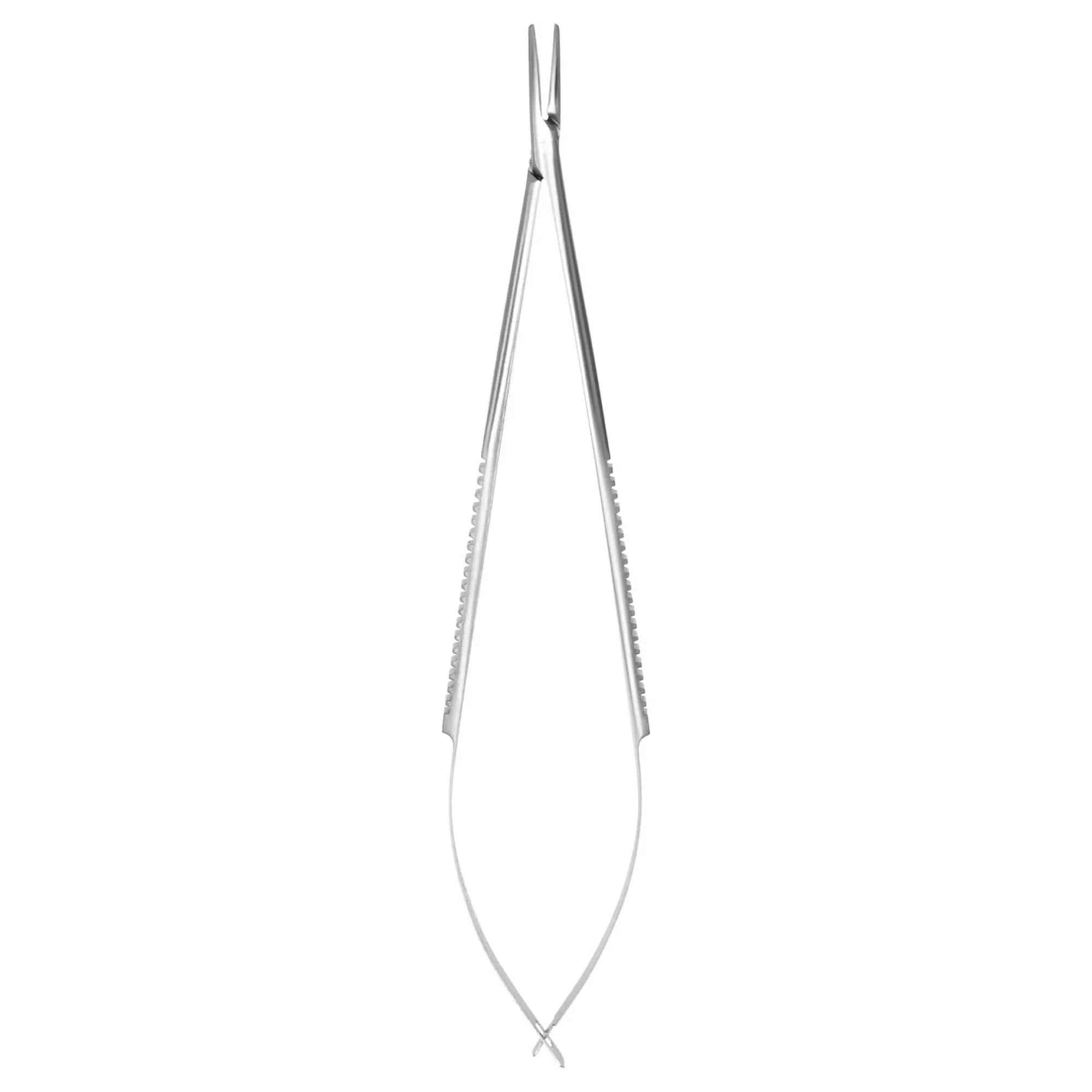 Удобная конструкция иглодержателя обеспечивает уверенное положение в руке хирурга, надежный захват и фиксацию хирургической иглы. Отсутствие рубящего эффекта при фиксации иглы гарантирует точность проведения иглы на всех стадиях наложения швов. Наружные пластиночные разводные пружины служат для плавной работы иглодержателя.