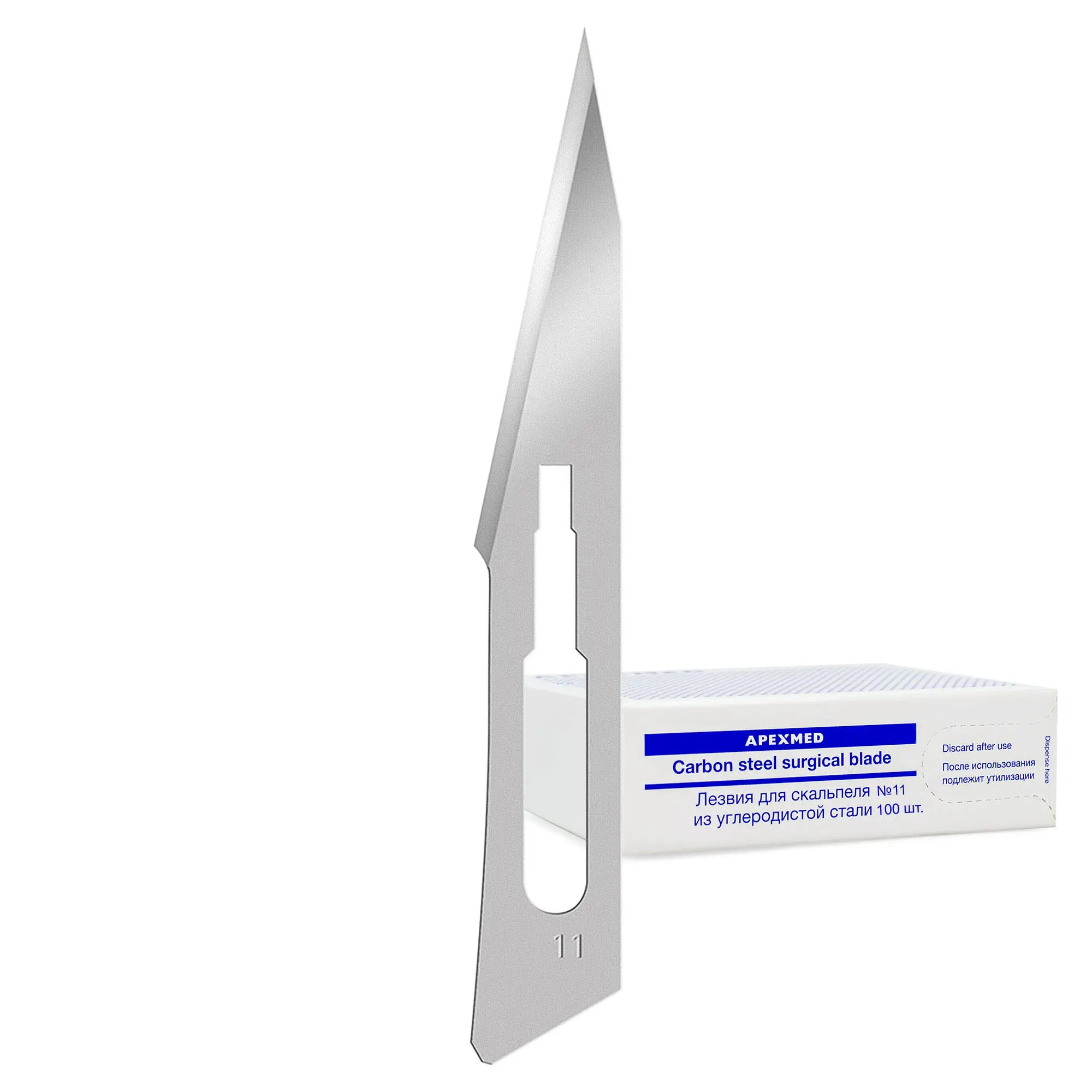 Лезвие из углеродистой стали №11, 100 штук, Apexmed