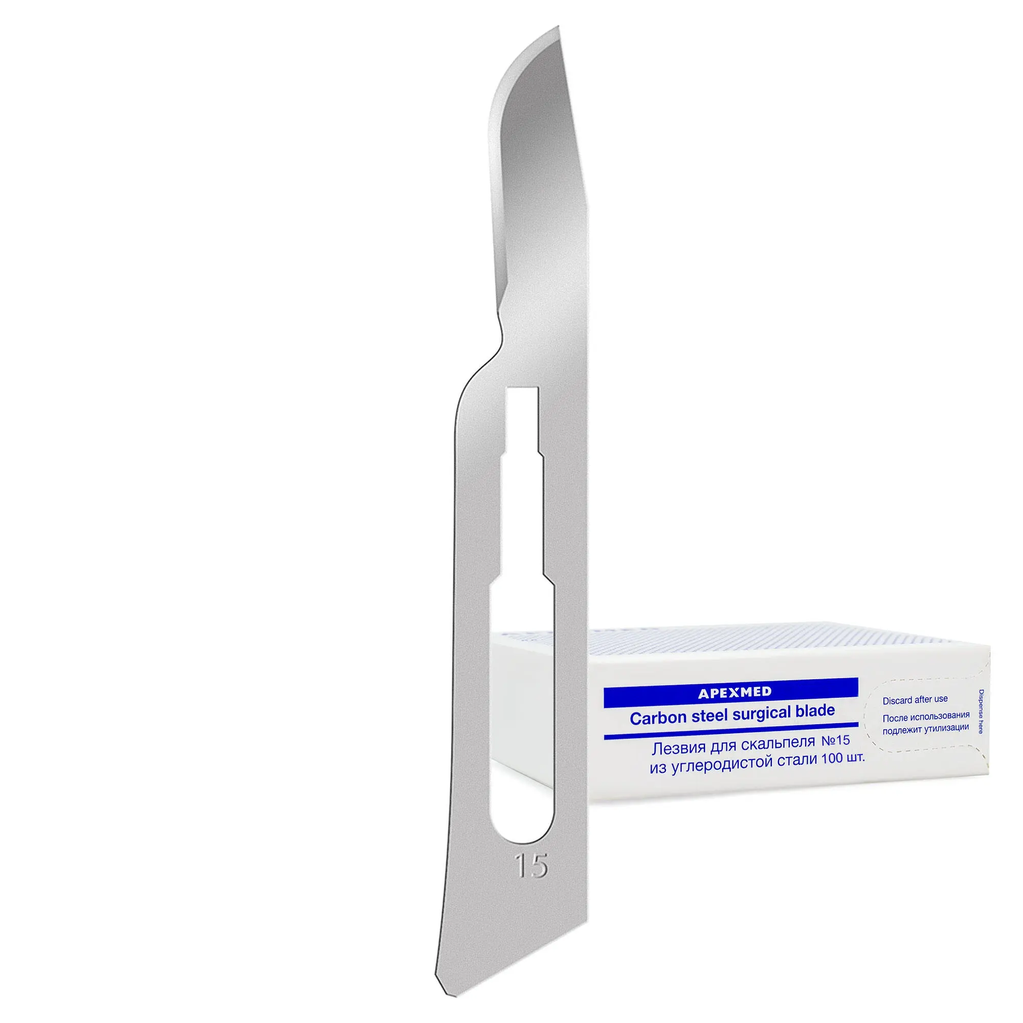 Лезвие из углеродистой стали №15, 100 штук, Apexmed