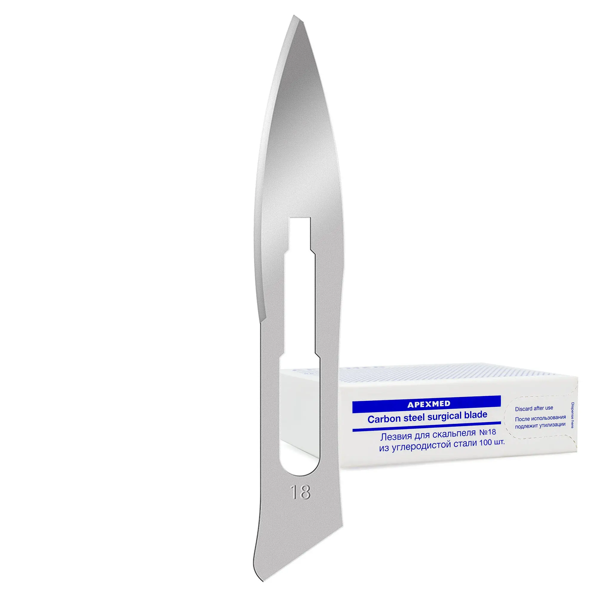 Лезвие из углеродистой стали №18, 100 штук, Apexmed
