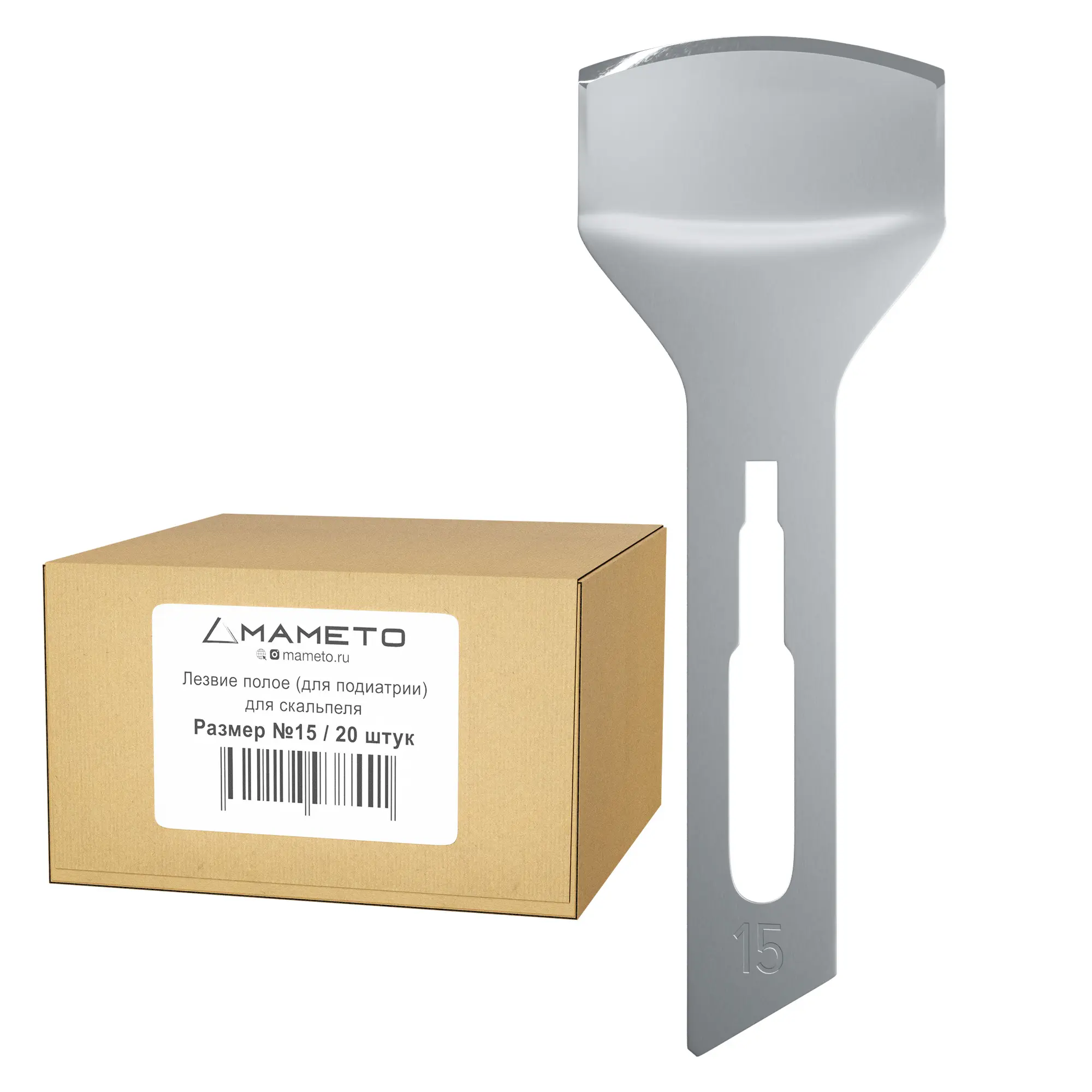 Лезвие полое для скальпеля Apexmed №15, для подиатрии, из углеродистой стали, 20 шт, стерильное, медицинское