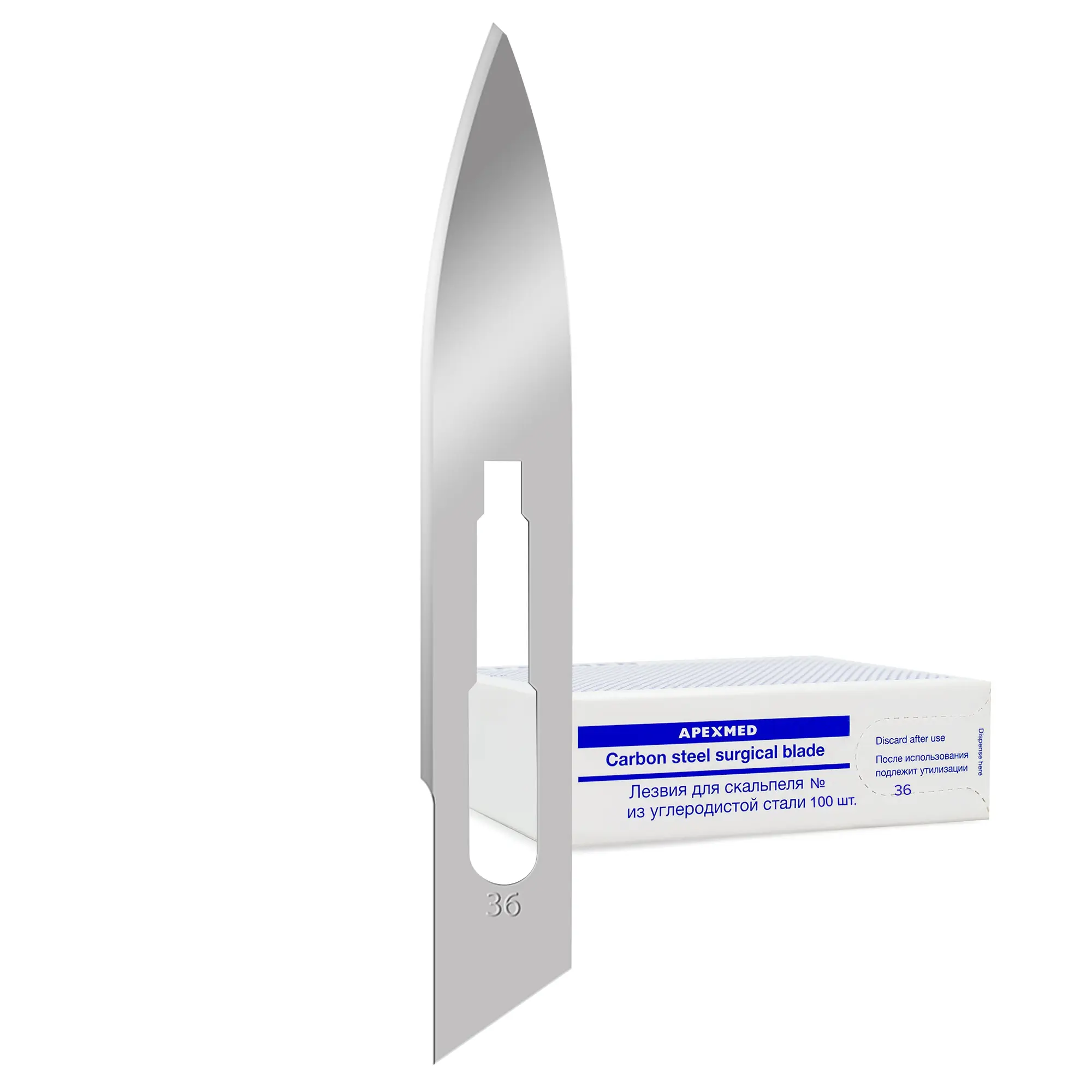 Лезвие хирургическое для скальпеля Apexmed №36, из углеродистой стали, 100 шт, медицинское, стерильное
