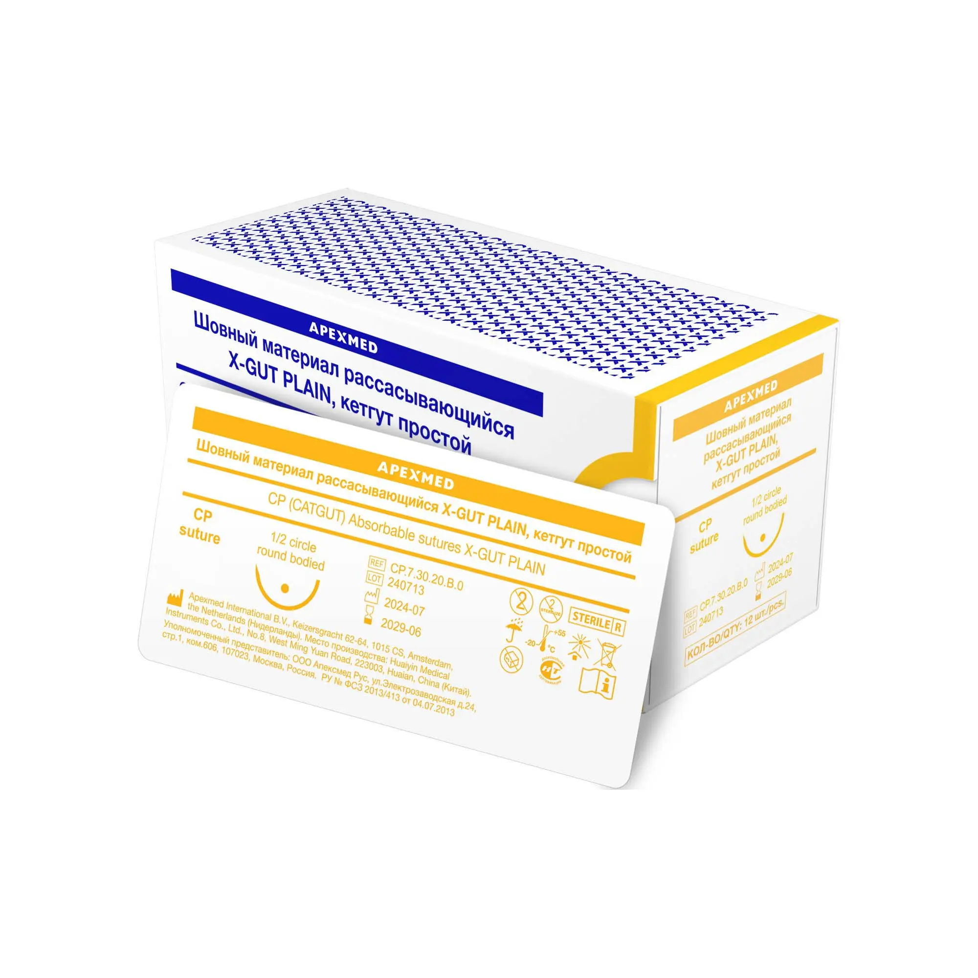 Плетеная нить X-GUT PLAIN изготовлена из натурального сырья, прочная и эластичная, имеет одинаковый диаметр по всей длине, полностью рассасывается через 50-70 суток, надежный узел выдерживает достаточную нагрузку ткани. Атравматичная колющая игла изготовлена из нержавеющей стали, с изгибом 1/2 окружности. Шовный материал Apexmed стерилен, упакован в индивидуальную упаковку и имеет регистрационное удостоверение медицинского изделия.