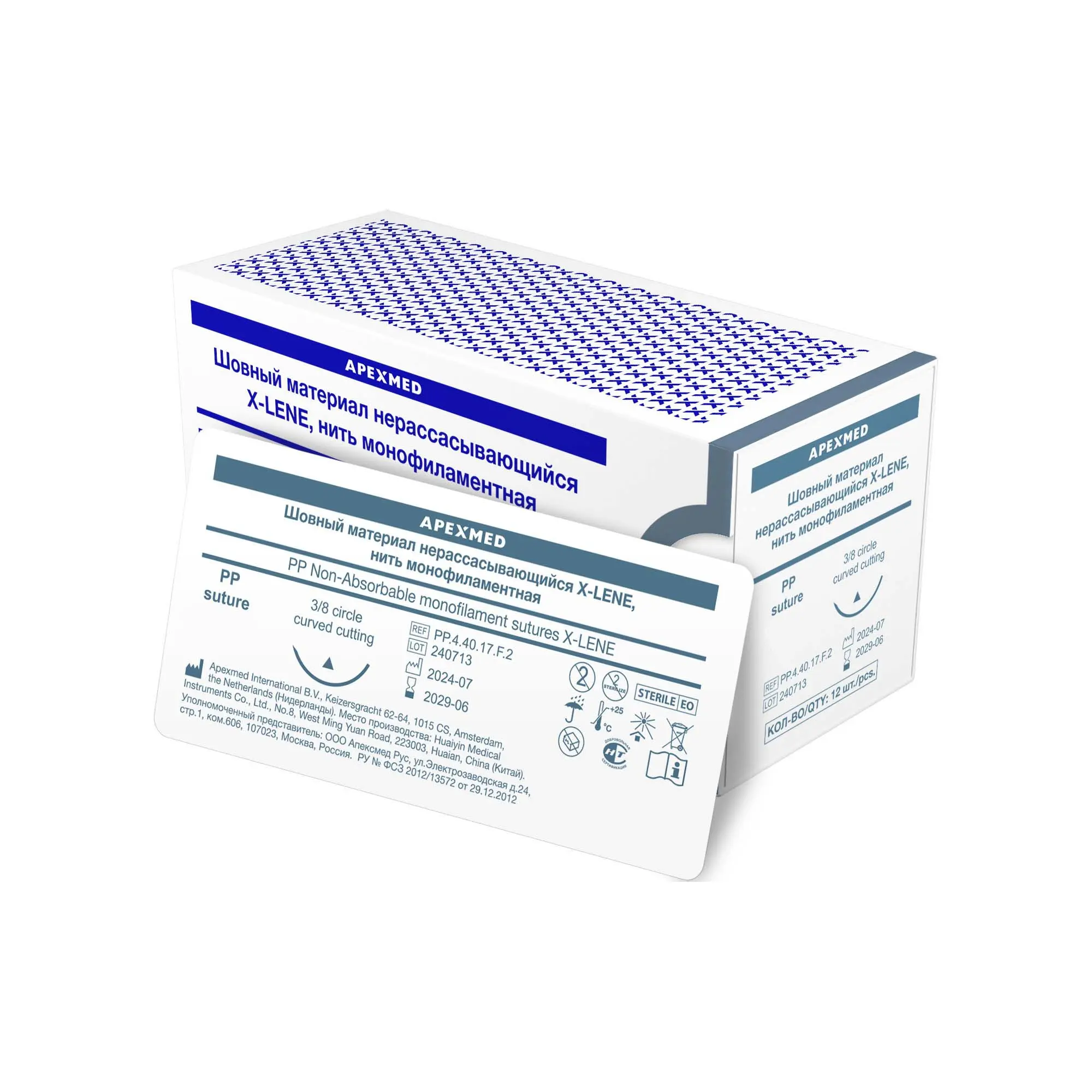 Монофиламентная нить X-LENE прочная и эластичная, имеет одинаковый диаметр по всей длине, надежный узел выдерживает достаточную нагрузку ткани. Атравматичная режущая игла изготовлена из нержавеющей стали, с изгибом 3/8 окружности. Шовный материал Apexmed стерилен, упакован в индивидуальную упаковку и имеет регистрационное удостоверение медицинского изделия.