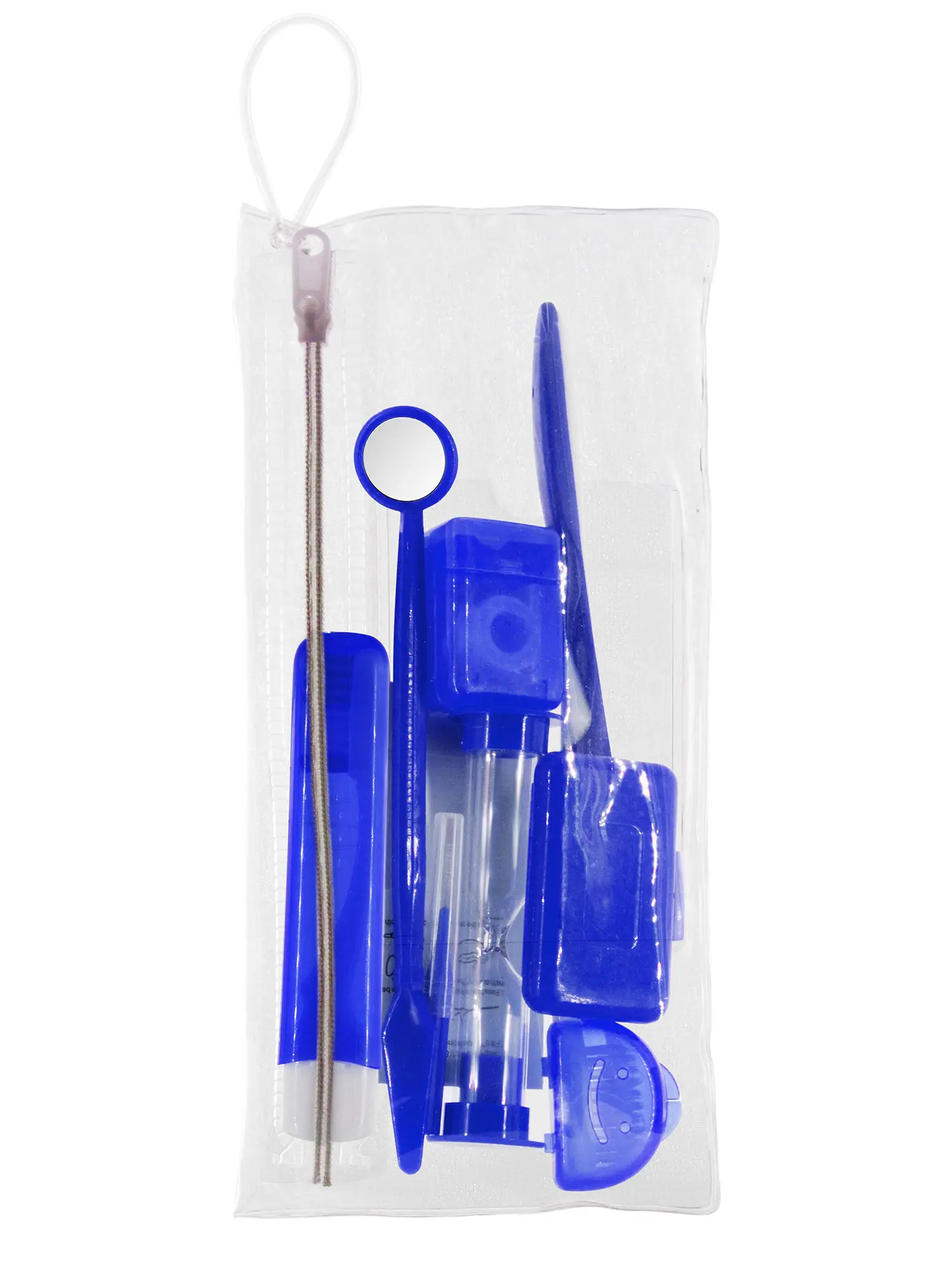 Ортодонтический набор разработан специально для комплексного ухода за полостью рта во время ношения брекетов. Компактная пластиковая сумочка включает в себя все необходимые средства для тщательной гигиены полости рта в поездках и путешествиях.