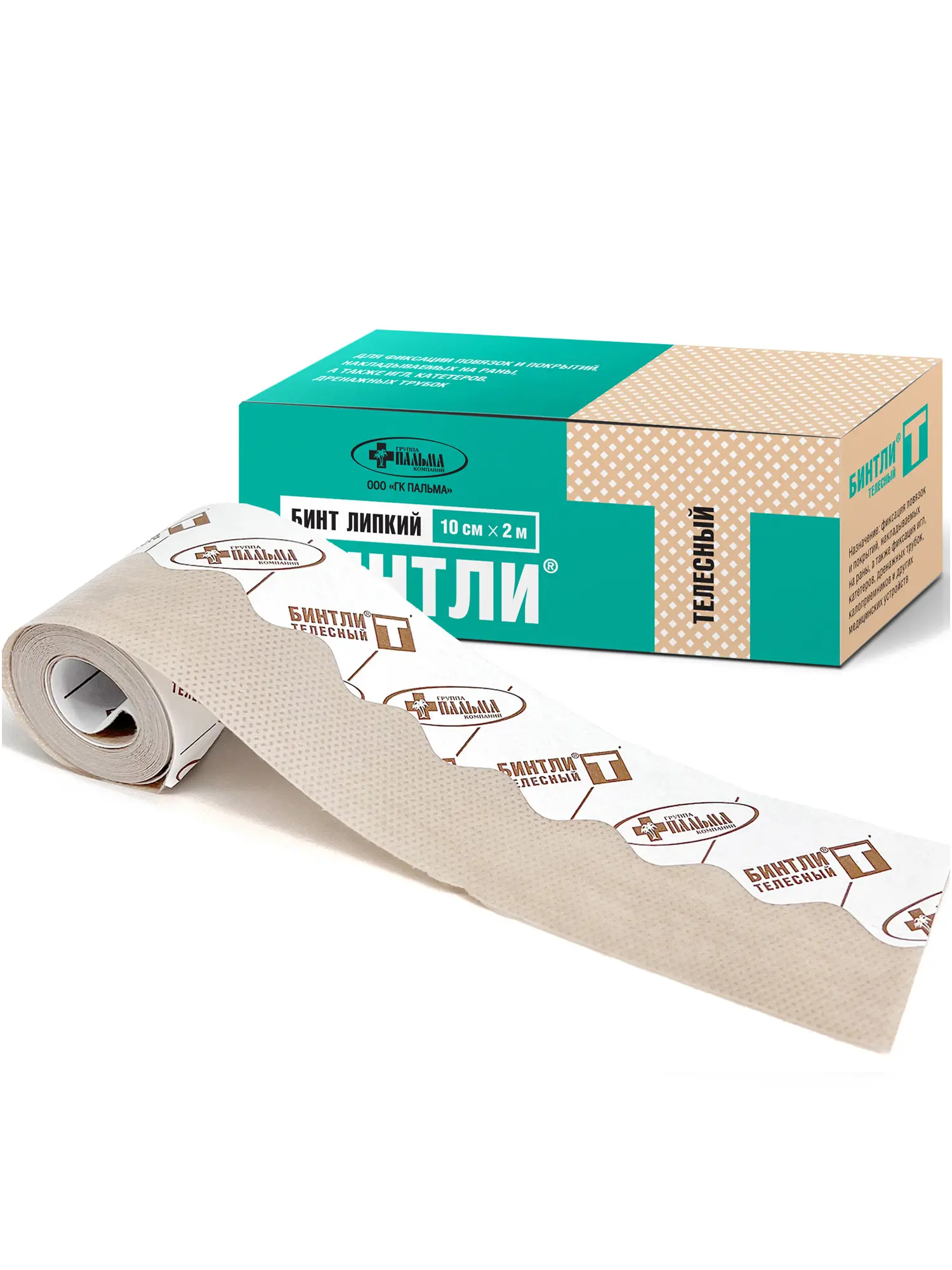Бинт медицинский Пальма Бинтли-Т, 10 см х 2 м, липкий, телесный