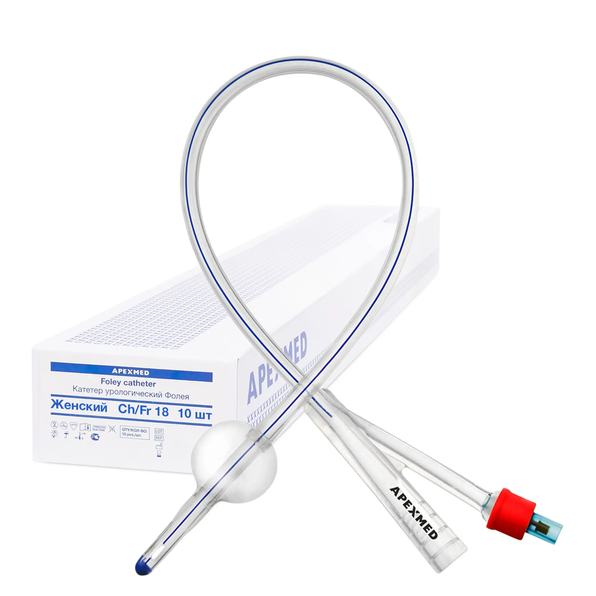 Катетер Фолея Apexmed обеспечивает отведение мочи из мочевого пузыря, также может использоваться для промывания или введения лекарственных препаратов. Гладкая поверхность снижает трение при установке, что делает процедуру более комфортной. Надёжная фиксация в мочевом пузыре баллоном позволяет катетеру оставаться в нужном положении без риска выпадения.