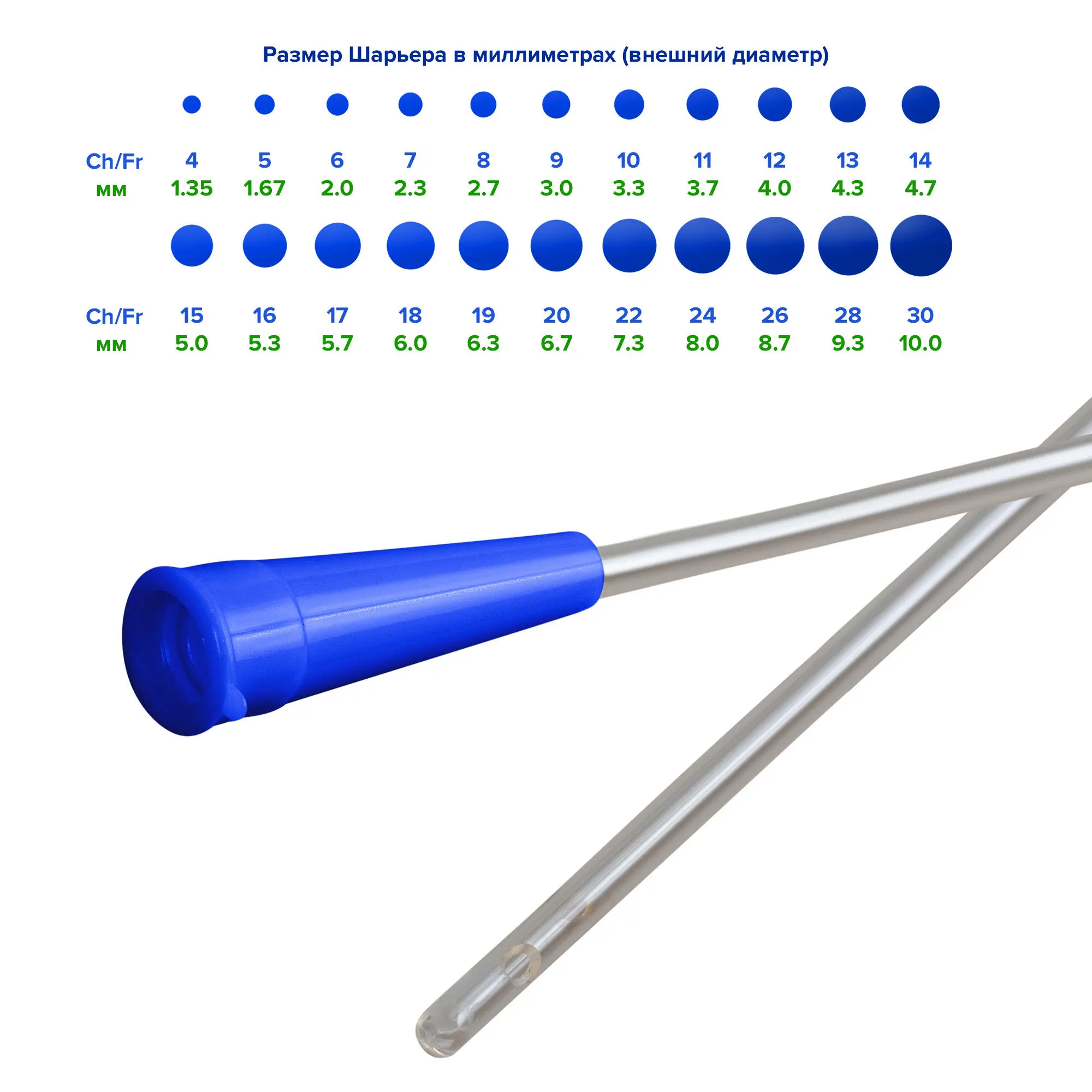 Катетер урологический мужской имеет большую длину и диаметр по сравнению с женским, это связано с анатомическими особенностями - женский уретральный канал короче, чем у мужчин. Длина мужских катетеров Нелатона составляет около 40 см.