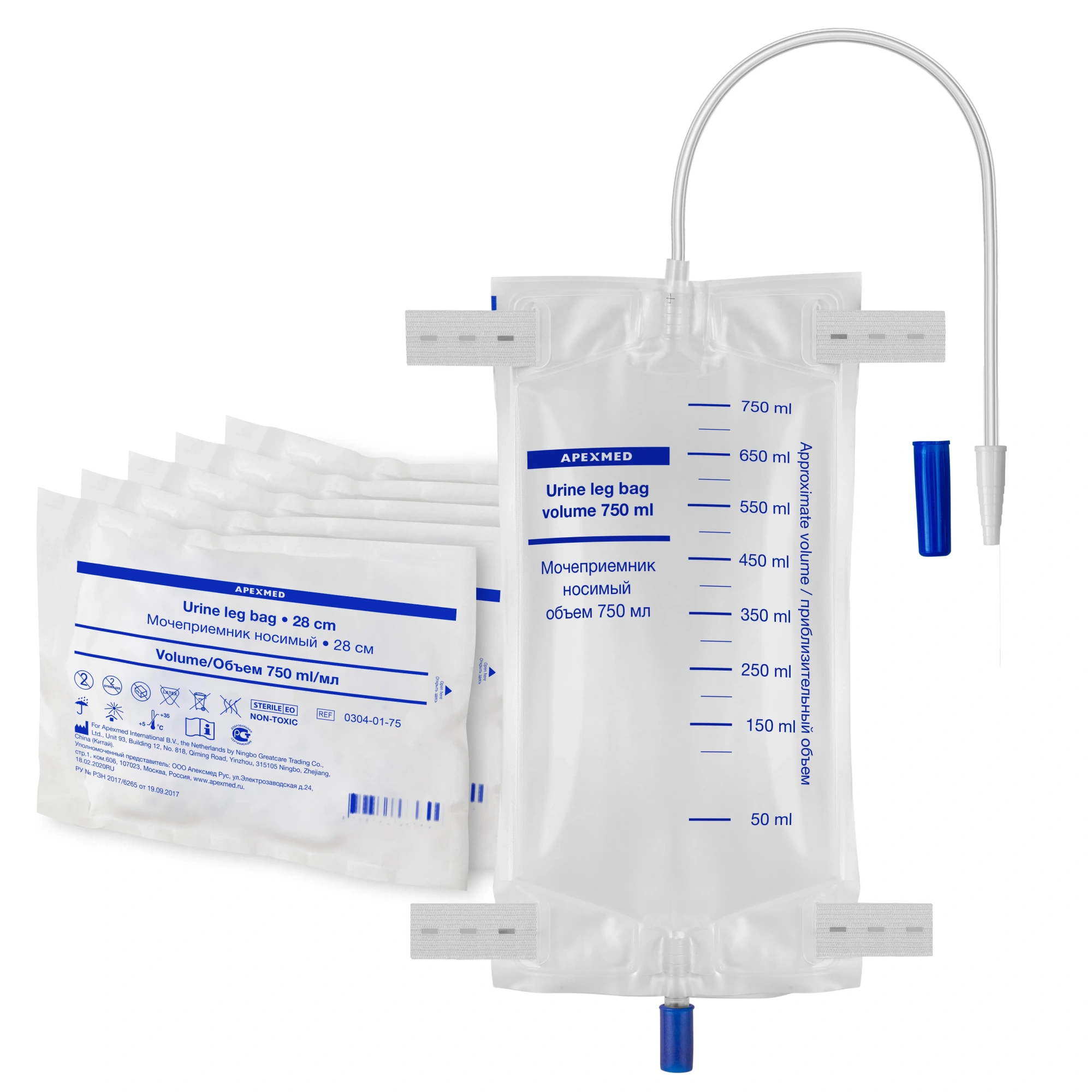Мочеприемник носимый, 750 мл, 28 см, 5 шт, Apexmed